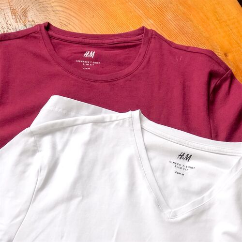今年も主人にH&MのTシャツを購入。 SLIM FIT / Mサイズ。 Tシャツ ほんの少しウエスト部分がシェイプされてるタイプ。 気心地が良い上に、上半身を綺麗に見せてくれる…というか、自分がスリムと錯覚させてくれるらしい。 錯覚でも着ていて気分が良いのは、最…
